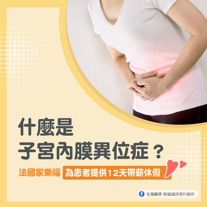 25 4 月 不孕症檢查, 人工受孕 什麼是子宮內膜異位症? Posted by jadeshih 2024-06-21 前陣子看到法國的家樂福為了完善員工福利,為患有子宮內膜異位症 的女性提供了一年12天... Continue reading